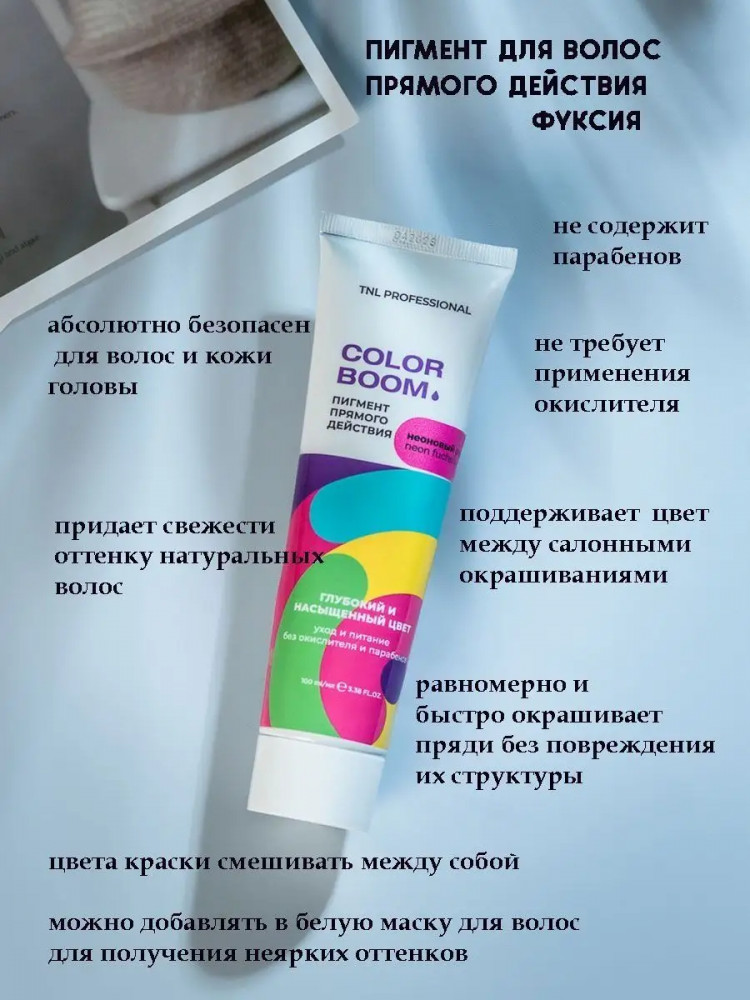 TNL Professional Пигмент прямого действия для волос «Color boom», оттенок Неоновый розовый