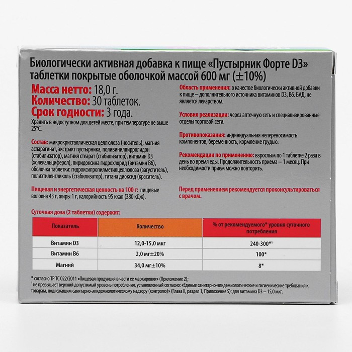 Витамир Таблетки «Пустырник форте D3»-25% +52 успокаивает хорошая переносимость хороший состав
