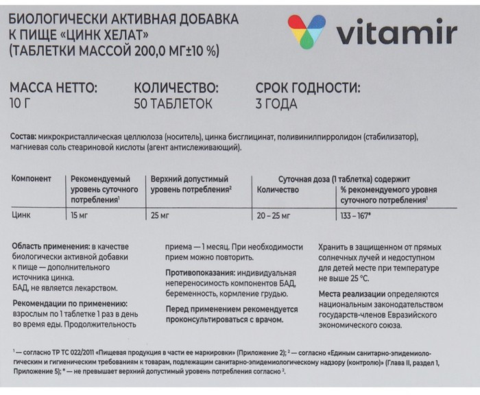 Витамир Таблетки «Цинк хелат»-25% +93