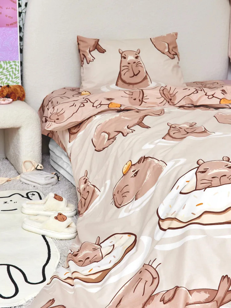 Crazy Getup Комплект постельного белья «Capybara»-25% +161 100% хлопок цветостойкость яркий рисунок сохраняет форму