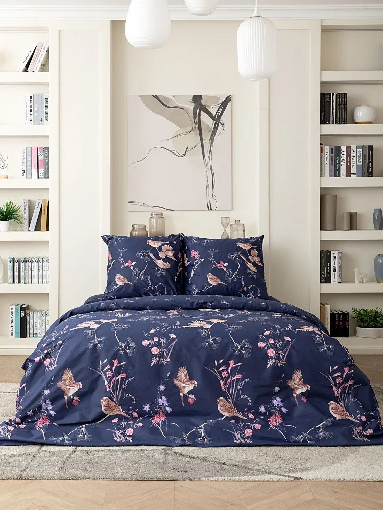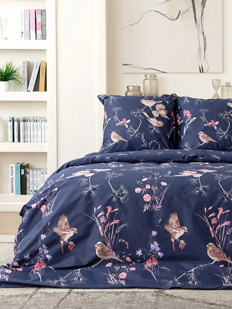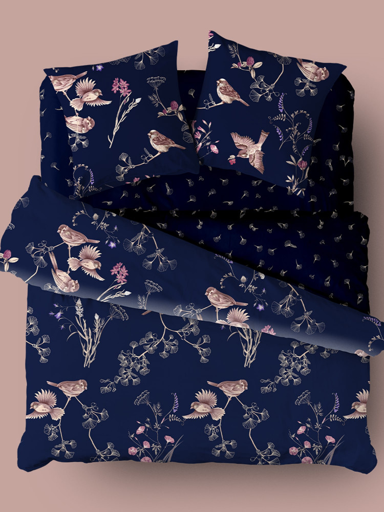 Изысканный комплект постельного белья Athenais ассоциируется с райским садом восточных дворцов. Сочетание глубокого синего цвета и дизайн с райскими птицами погрузит вас мир безмятежного сна.