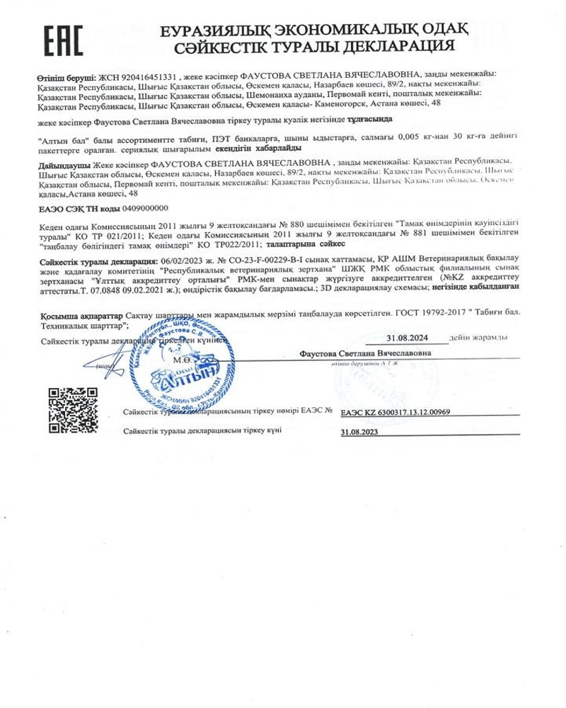 Алтын бал Мёд натуральный эспарцетовый