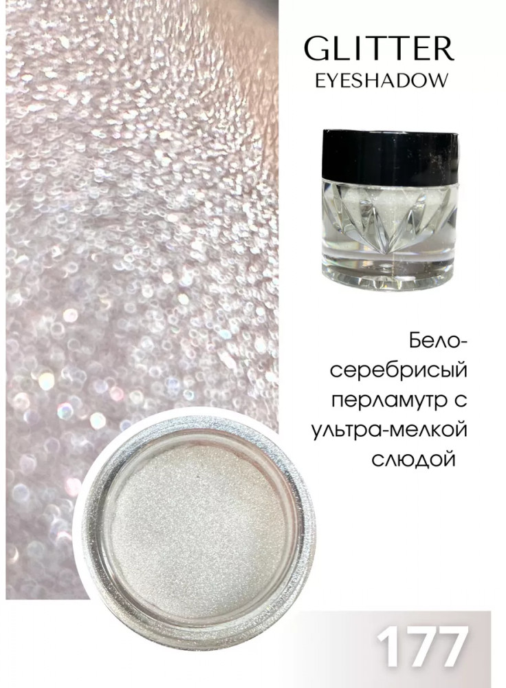 Отзывы «Тени для век перламутровые «Glitter eyeshadow», оттенок 177 бело-серебристый перламутр с ультра-мелкой слюдой»