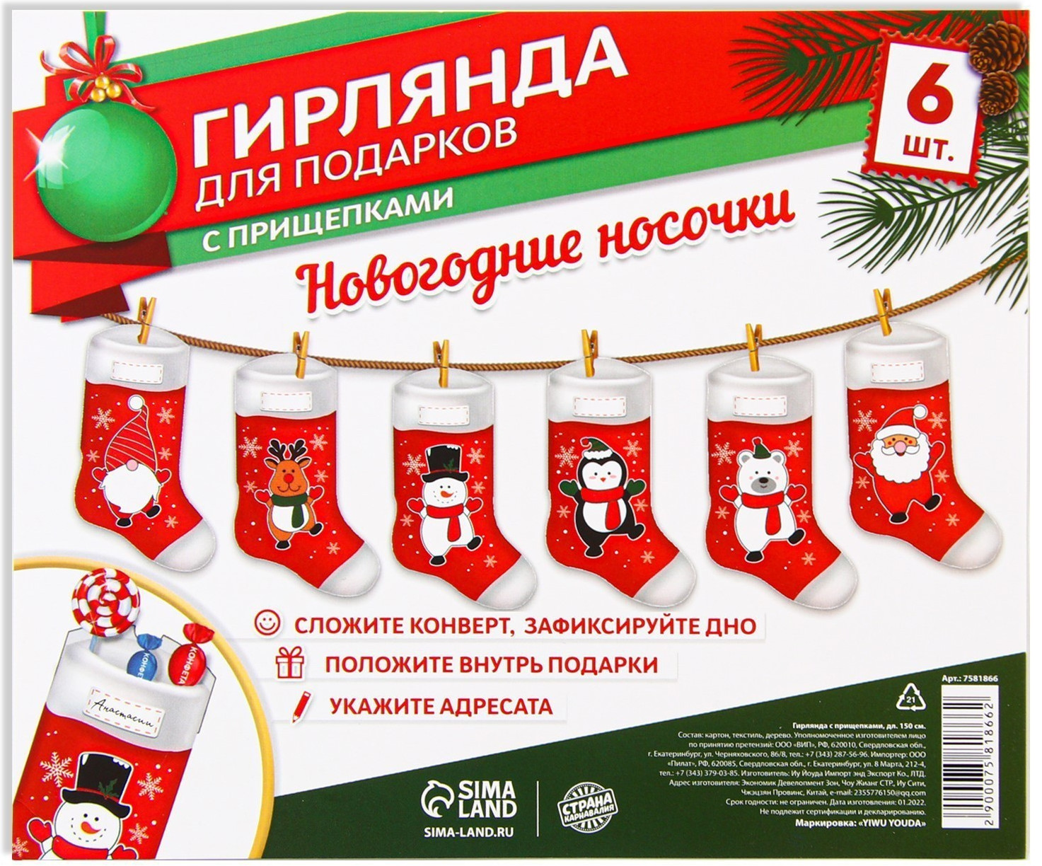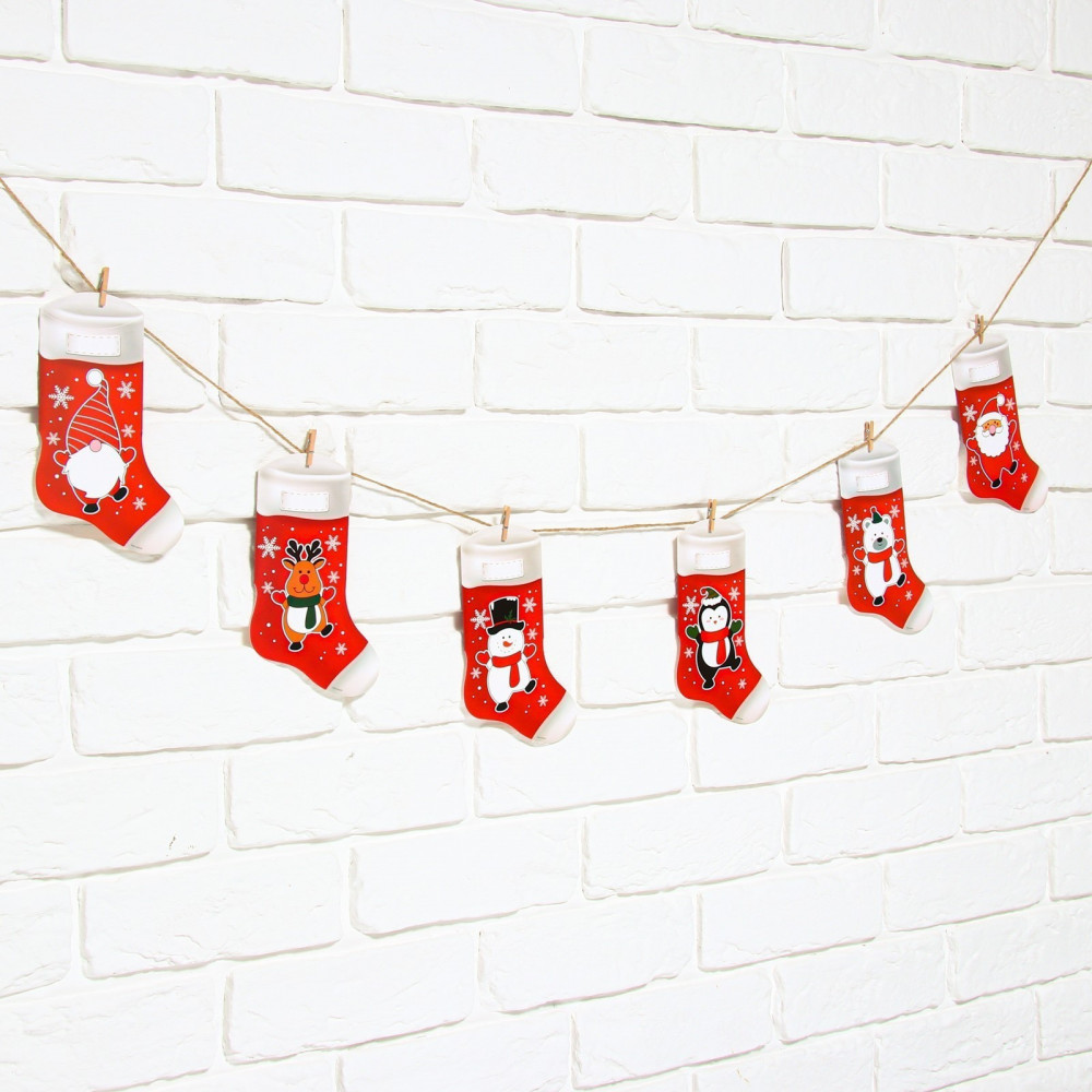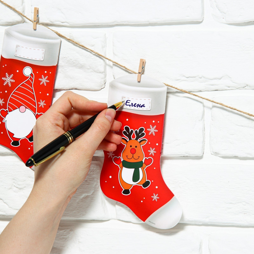 💳 Оплатить за товар можно при получении 🇰🇿 Есть бесплатная доставка по Казахстану от 1 дня 🎁 Копите бонусы с каждой покупки Растяжка — гирлянда в виде новогодних носков — красивый и стильный атрибут праздничного оформления. Бумажная гирлянда, выполненная из плотного картона (250 грамм), будет отлично смотреться на кадрах в фотозоне или других локациях.Также в данную гирлянду вы можете положить небольшие подарки для ваших друзей и близких, что сделает ваш праздник особенно волшебным. Картонная гирлянда выполнена в современном стиле и подходит под различную тематику оформления праздника. Вывеска регулируется по длине и по желанию может использоваться в один или два ряда. Размер карточек — 7 × 12,6 см. |
