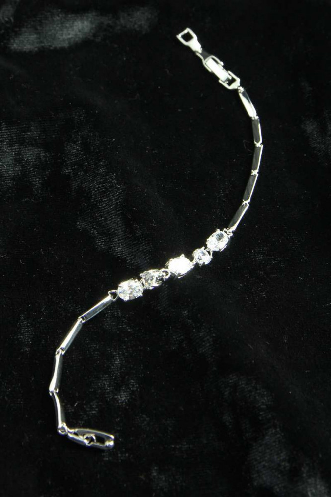 Ювелирный cуперсплав Элоксал — это не драгоценный металл, а современный материал идеально совпадающий с цветами золота и серебра. Тонкий изящный браслет, выполненный из металла цвета серебра, украшенный фианитами разноцветного цвета.