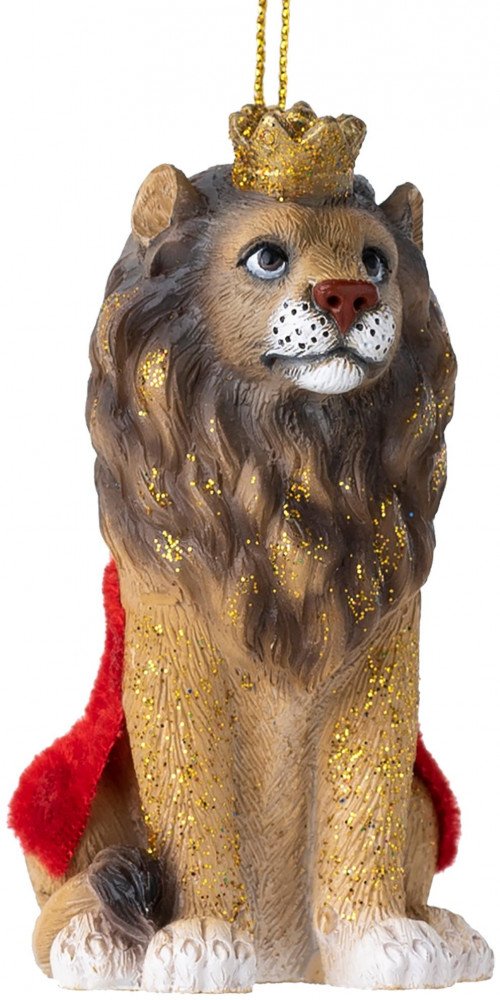 Коллекция дикие кошки обратит на себя внимание каждого. Грациозный лев в накидке добавит к образу вашей новогодней ели величия и статности. Елочное украшение сделано из полирезины. Полирезина — высокотехнологичный современный материал, который не деформируется, не выцветает и позволяет создавать формы с высокой детализацией и яркими цветами. Много лет сохранит первоначальный внешний вид и не разобьется, в отличие от стекла.