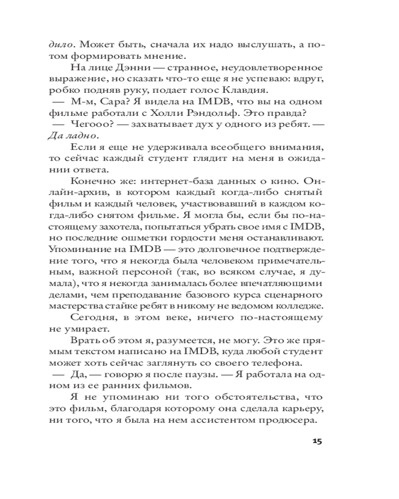 💳 Оплатить за товар можно при получении 🇰🇿 Есть бесплатная доставка по Казахстану от 1 дня 🎁 Копите бонусы с каждой покупки Серия: Corpus Сара Лай мечтала стать продюсером, но ее карьера в кино внезапно оборвалась. Теперь она преподает в небольшом университете и больше всего хочет забыть о своих юношеских амбициях, не сожалеть о прошлом и не винить себя. Но когда к ней обращается журналист, интересующийся подробностями ее работы с известным кинопродюсером Хьюго Нортом, Сара понимает, что больше не может молчать. Это ее последний шанс рассказать о случившемся и, быть может, добиться возмездия. Но когда она начинает делиться тайнами, которые скрывала столько лет, Сара понимает, что и ей есть в чем каяться. |