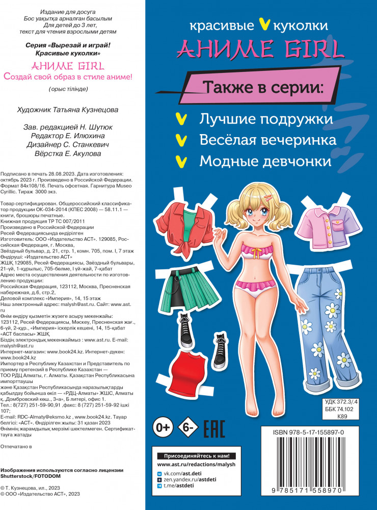 Серия: Вырезай и играй! Красивые куколки Познакомься с японскими модницами Юки, Ханой, Фумико и их питомцами! Они такие разные, но их объединяет одно — они очень любят наряжаться! Помоги подобрать девчонкам самый стильный наряд. |