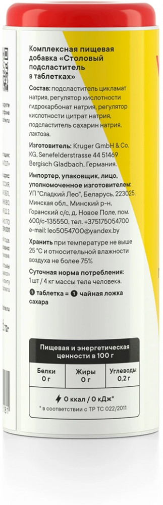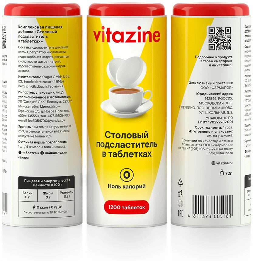 Vitazine Подсластитель столовыйВ данный момент этот товар отсутствует в продаже. Возможно, у нас найдется аналогичный или похожий товар здесь. Заменитель сахара в таблетках. Не содержит калорий. Удобно брать с собой. Подходит при сахарном диабете 2 типа. Одна таблетка заменяет одну чайную ложку сахара. Классическая формула заменителя сахара из Германии. Аналог по форме и составу других популярных подсластителей в таблетированной форме. Состав: подсластители (цикламат натрия, сахаринат натрия), регуляторы кислотности (гидрокарбонат натрия, цитрат натрия), лактоза. Для замены сахара в диетических напитках и блюдах. Можно добавлять в чай, кофе, компоты, морсы и другие напитки. Для использования в выпечке таблетки можно растолочь. Замена сахара подсластителем рекомендована на низкоуглеводных диетах, при питании со сниженной калорийностью. |