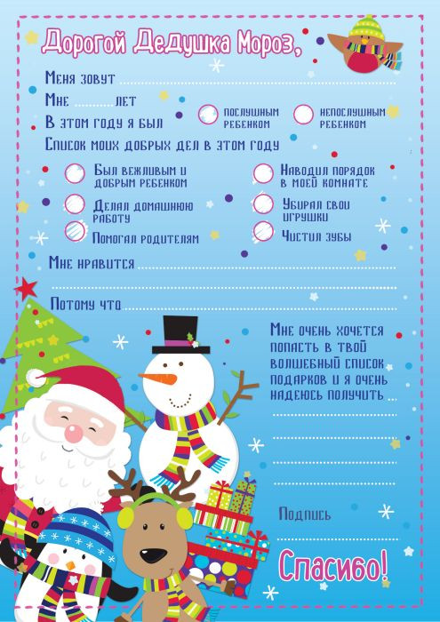 💳 Оплатить за товар можно при получении 🇰🇿 Есть бесплатная доставка по Казахстану 🎁 Копите бонусы с каждой покупки Новогоднее письмо Деду Морозу — это готовый шаблон, который поможет ребенку без труда создать послание новогоднему волшебнику. Письмо выполнено на качественной бумаге и украшено красочными рисунками. На письме есть также печать, позволяющая почте Деда Мороза доставить письмо по правильному адресу. В бланке письма можно писать ручками, карандашами или фломастерами и даже рисовать то, что захочется. В новогодний набор вместе с письмом входит также готовый и оформленный конверт из бумаги. |