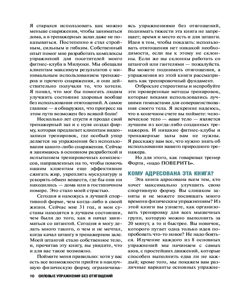 💳 Оплатить за товар можно при получении 🇰🇿 Есть бесплатная доставка по Казахстану от 1 дня 🎁 Копите бонусы с каждой покупки Теперь сжигать жир и качать мышцы можно когда и где угодно. Избавившись от необходимости ходить в тренажерный зал и используя свое собственное тело вместо штанги, вы сбережете время, деньги и нервы. Эта книга научит вас 8 самым важным упражнениям, с помощью которых вы обретете силу, мощь, выносливость и подвижность элитных спортсменов. Кроме того, она содержит десятки тренировочных программ для самых разных целей и возможностей. |