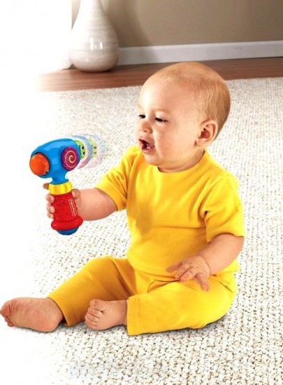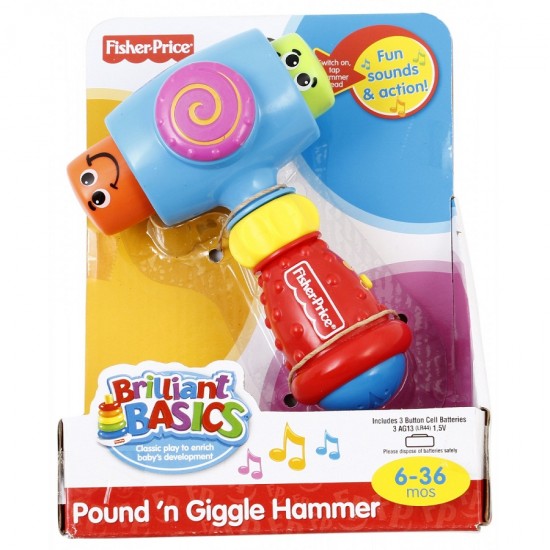 Fisher-Price Веселый молоточекВ данный момент этот товар отсутствует в продаже. Возможно, у нас найдется аналогичный или похожий товар здесь. Серия: Brilliant basics Веселый молоточек наверняка станет одной из самых любимых игрушек маленького непоседы, ведь с первого взгляда его привлекут яркие насыщенные цвета, из которых сделана игрушка, и веселые личики, выглядывающие из боковых сторон молоточка. Молоток идеально подходит для активных деток, которым сложно усидеть на месте, ведь, в отличие от других, ее можно трясти, ударять об стену и колотить, не повреждая. Поочередно по бокам прячутся рожицы зеленого и оранжевого цвета. Удобная рукоятка со специальной выпуклой поверхностью оптимального для маленькой детской ручки размера дает возможность хватать и удерживать игрушку без проблем. Посредине рукоятки находится колесико-шайба, которое крутится при движении с веселым треском. Начав наклонять молоточек в разные стороны, малыш удивится его функциональности: центральный диск игрушки начнет крутиться, а смешные разноцветные мордочки будут улыбаться малышу, издавая веселые звуки шести видов и детский смех. Если малыш случайно ударит сам себя, ему не будет больно, потому что прячущаяся рожица смягчит удар. Это непременно поднимет настроение малютке и вызовет желание играть дальше. |