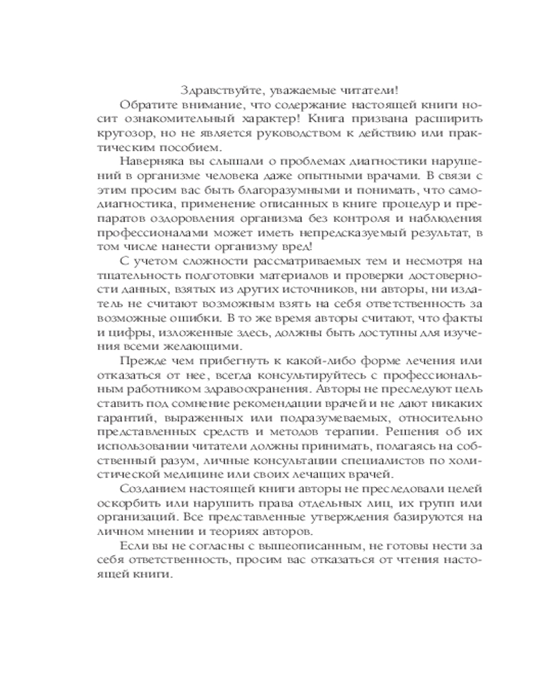 Для вдумчивых читателей — в остальных частях этой книги (1-й и 2-й) вы найдете исчерпывающую информацию о натуральных методах лечения. Авторы предлагают практические советы и рекомендации, проверенные временем — общий стаж авторов составляет 95 лет.