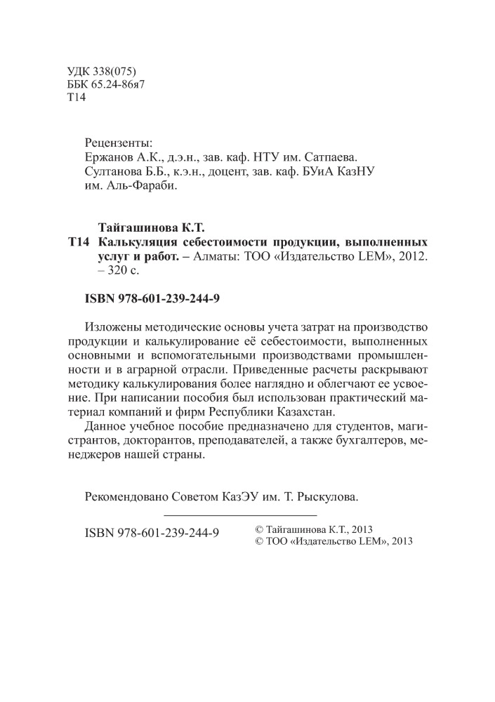 💳 Оплатить за товар можно при получении 🇰🇿 Есть бесплатная доставка по Казахстану 🎁 Копите бонусы с каждой покупки Изложены методические основы учета затрат на производство продукции и калькулирование её себестоимости, выполненных основными и вспомогательными производствами промышленности и в аграрной отрасли. Приведенные расчеты раскрывают методику калькулирования более наглядно и облегчают ее усвоение. При написании пособия был использован практический материал компаний и фирм Республики Казахстан. Данное учебное пособие предназначено для студентов, магистрантов, докторантов, преподавателей, а также бухгалтеров, менеджеров нашей страны. |