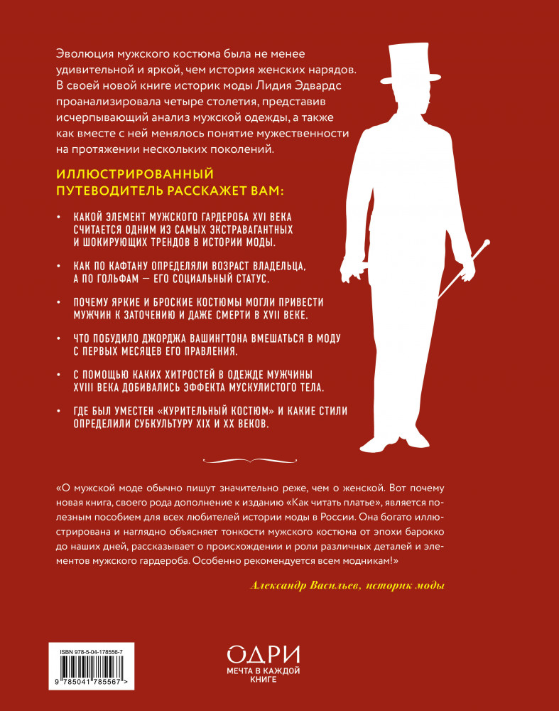 💳 Оплатить за товар можно при получении 🇰🇿 Есть бесплатная доставка по Казахстану от 1 дня 🎁 Копите бонусы с каждой покупки Серия: История моды в деталях Новая книга историка моды и автора бестселлера «Как читать платье» Лидии Эдвардс — это исчерпывающий путеводитель по эволюции мужской моды и костюма на протяжении четырех столетий. Книга станет идеальным пособием для тех, кто хочет научиться отличать пальто «честерфилд» от ольстерского; разбираться в стилях денди и тедди-боя; понимать разницу между кафтаном, фраком и смокингом. |