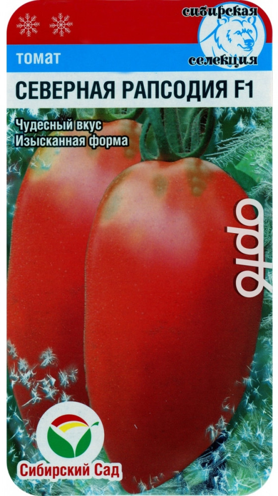 Сибирский Сад Томат «Северная рапсодия F1»В данный момент этот товар отсутствует в продаже. Возможно, у нас найдется аналогичный или похожий товар здесь. Раннеспелый гибрид для защищенного грунта с очень красивыми плодами обтекаемой удлиненно-овальной формы густого красно-малинового цвета. Растение высотой около 1,9 метра, формирует 4-5 увесистых кистей с гладкими привлекательными плодами массой 150-180 грамм. Томаты достаточно плотные, с малым количеством семян и очень вкусной мякотью благодаря хорошо сбалансированному содержанию сахаров и кислот. Более крупные плоды обеспечат отличный вкус летних салатов и соков, а томаты помельче прекрасно подойдут для консервации и засола. Урожайность гибрида до 9 кг/м². |