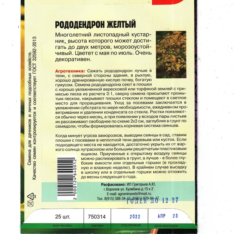 Агротехника: сажать рододендрон лучше в тени, с северной стороны здания, в рыхлую, хорошо дренированную кислую почву, богатую гумусом. Семена рододендрона сеют в плошки с хорошо увлажненной вересковой или торфяной землей с примесью песка из расчета 3:1, сверху семена присыпают промытым песком, накрывают плошки стеклом и помещают в светлое место для проращивания. Уход за посевами заключается в увлажнении субстрата по мере необходимости, ежедневном проветривании и удалении конденсата со стекла. Ростки появляются обычно через месяц, а при появлении у всходов пары листьев их рассаживают свободнее по схеме 2х3 см, заглубляя в грунт по семядоли, чтобы формировалась корневая система сеянцев.