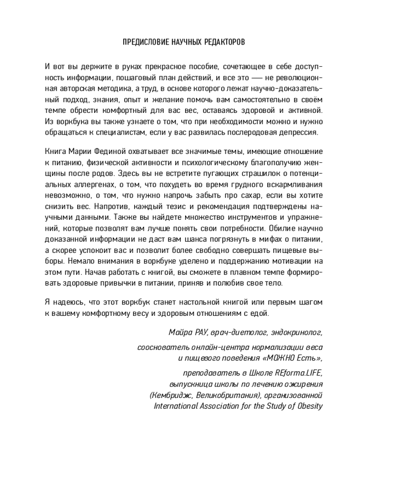 💳 Оплатить за товар можно при получении 🇰🇿 Есть бесплатная доставка по Казахстану от 1 дня 🎁 Копите бонусы с каждой покупки Серия: Мамы-блогеры. Советы по беременности и родам Как бы нам ни хотелось побыстрее влезть в свои любимые джинсы, возвращение в дородовой вес — это не спринт, а марафон. После рождения ребенка как никогда необходимо внимательно относиться к себе, своим желаниям и потребностям, чтобы в погоне за мечтой не навредить ни себе, ни малышу. Мария Федина, нутрициолог, консультант по коррекции веса, составила пошаговое руководство по восстановлению после родов. Она собрала всю необходимую теорию и составила эффективные упражнения, которые помогут сформировать здоровые отношения с едой (и с самой собой), нормализовать вес и наладить пищевое поведение. |