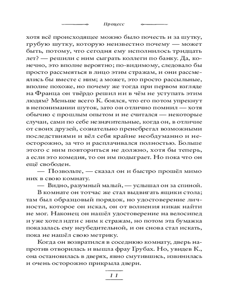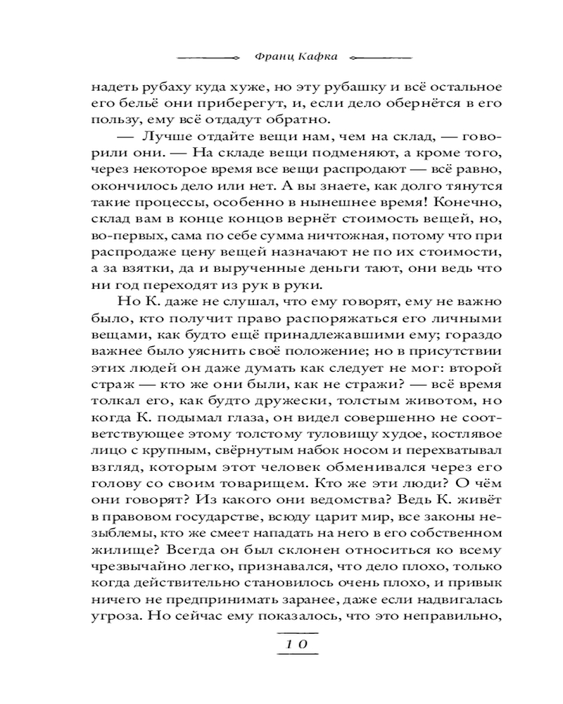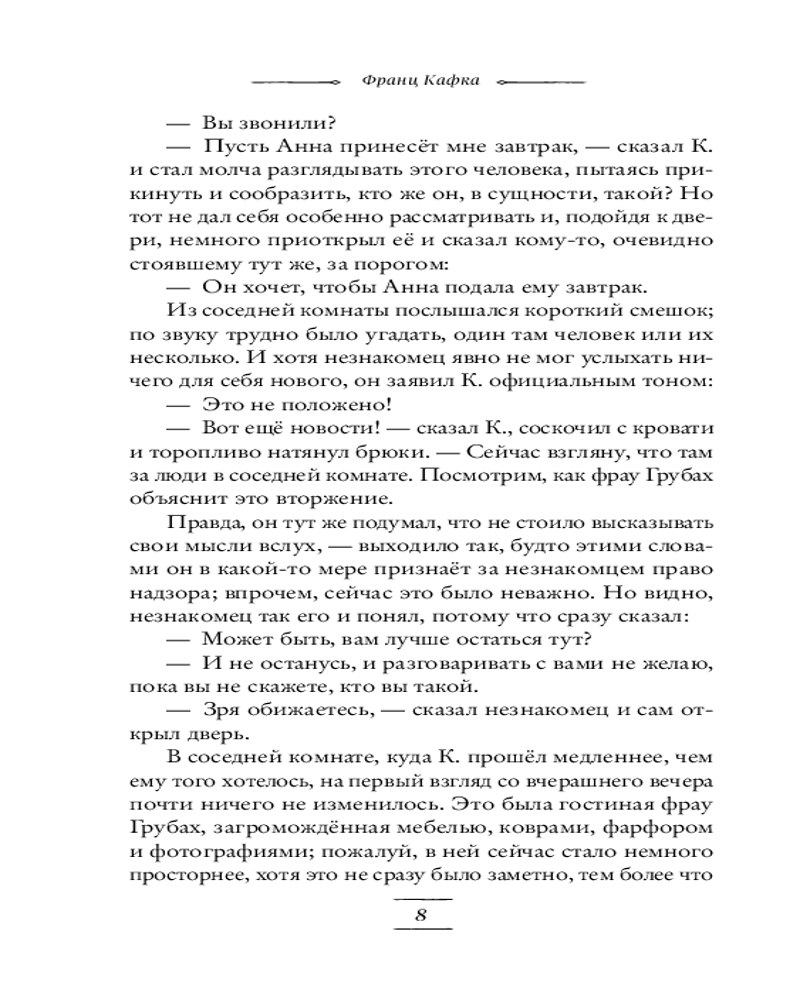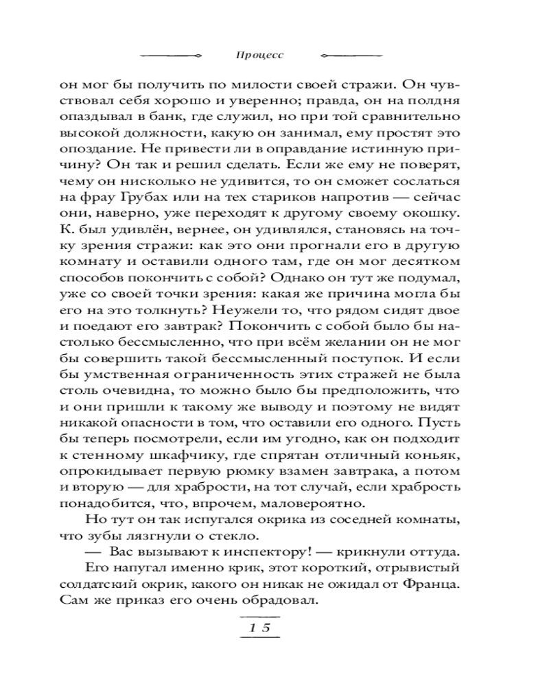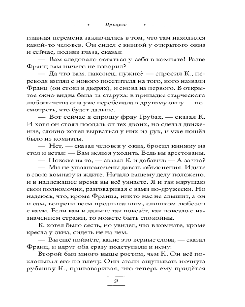Процесс. НовеллыВ данный момент этот товар отсутствует в продаже. Возможно, у нас найдется аналогичный или похожий товар здесь. Серия: Библиотека классической литературы Роман Франца Кафки «Процесс», согласно завещанию автора, должен был быть сожжён после смерти писателя. К счастью, этого не произошло. В итоге «Процесс» не только стал первой книгой, изданной после смерти Ф. Кафки, но и вошёл во всемирную историю литературы. А поклонники творчества писателя не устают находить и расшифровывать тайные смыслы, скрытые в текстах произведений. Роман «Процесс» и шесть коротких новелл, вошедшие в эту книгу, приглашают читателей в странный, непостижимый мир готического абсурда — может быть, ради новых открытий? «Библиотека классической литературы» — книги, которые помогают найти ответы на самые сложные вопросы! Издание в твёрдом переплёте. |