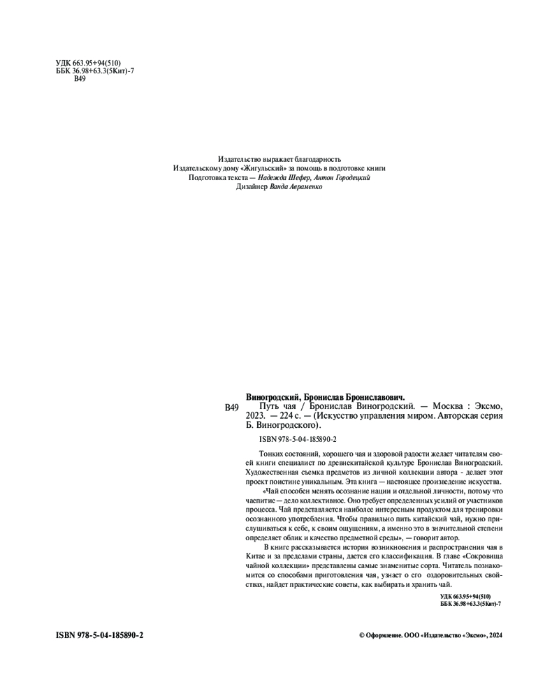 💳 Оплатить за товар можно при получении 🇰🇿 Есть бесплатная доставка по Казахстану от 1 дня 🎁 Копите бонусы с каждой покупки Серия: Искусство управления миром. Авторская серия Б. Виногродского В прекрасно иллюстрированной книге известного китаеведа и переводчика Бронислава Виногродского рассказывается история возникновения и распространения чая в Китае и за пределами страны, дается его классификация. В главе «Сокровища чайной коллекции» представлены самые знаменитые сорта. Читатель познакомится со способами приготовления чая, узнает о его оздоровительных свойствах, найдет практические советы, как выбирать и хранить чай. |
