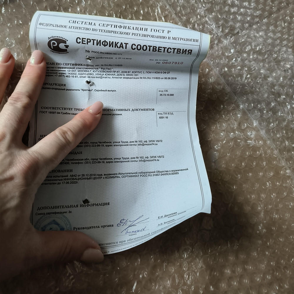Рыхлитель «Кротчел» имеет простую и надёжную конструкцию: рама и двое встречных вил. Рабочие вилы удобно вгонять в землю, так как упор для ноги расположен не под рамой, а над ней. Вилы при встречном движении рыхлят землю без её оборачивания.