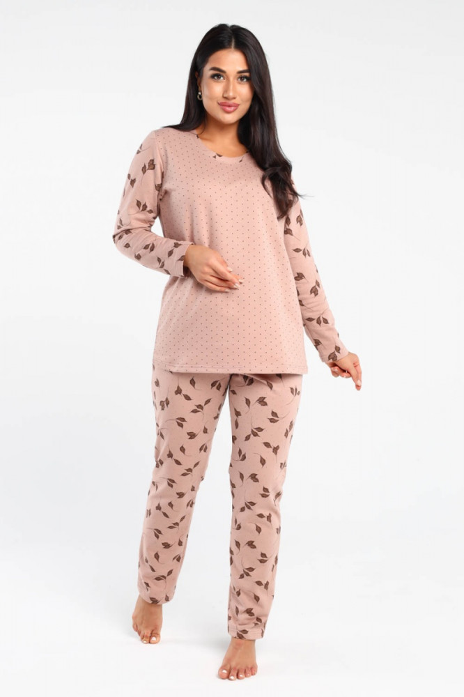 Девушки обожают наряжаться не только днем, но и ночью. Именно стильная и красивая пижама позволяет чувствовать себя круглосуточно привлекательной. Стоит напомнить, что от этого изделия зависит не только ваше хорошее настроение, но и качество сна. Модель позволит Вам сбросить накопленное напряжение за целый день и хорошо уснуть. Нежный цвет в сочетании с принтом подарит Вам ощущение спокойствия и уюта.
