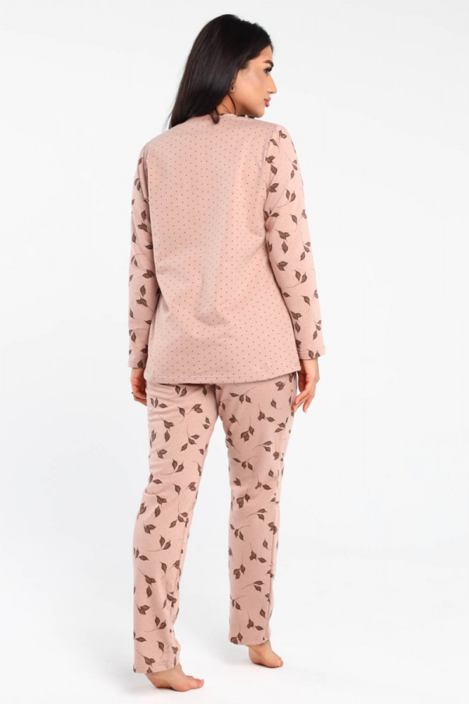 Пижама выполнена из трикотажного полотна 100% хлопок с начесом.
