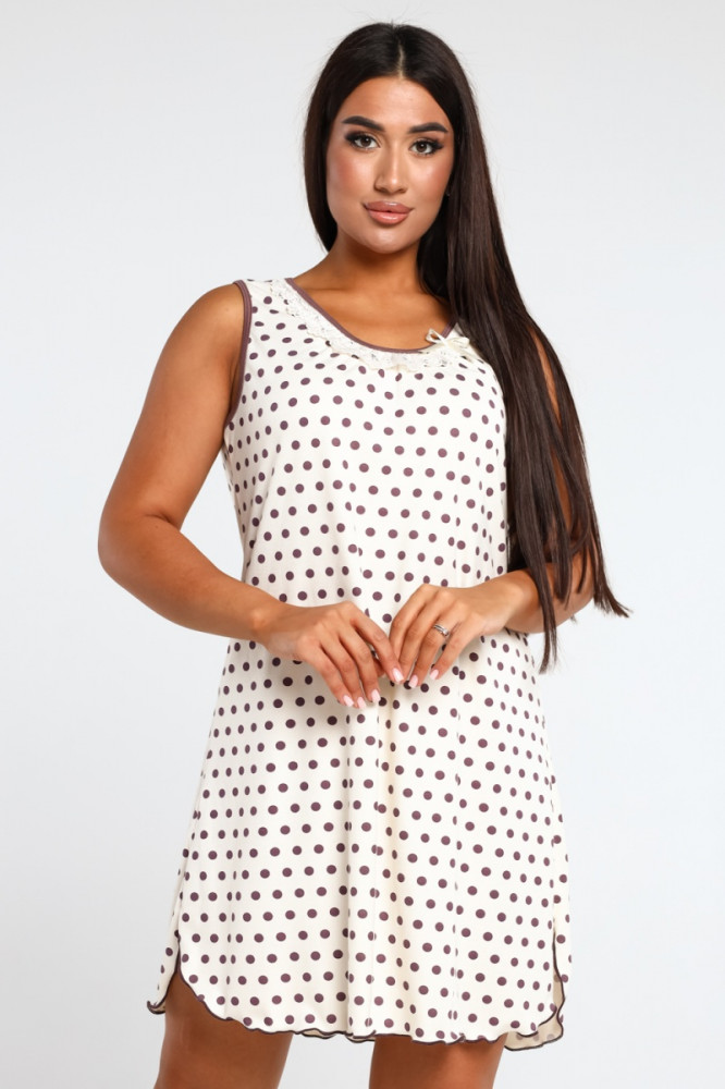 Сорочка ночная без рукавов, с округлым вырезом горловины. Сшита из материала мелисса. Одной из особенностей этого материала является его прекрасная эластичность, которая обеспечивает идеальную посадку и свободу движения.
