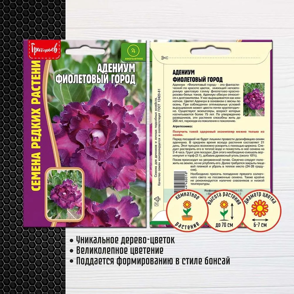 Григорьев Адениум «Фиолетовый город»В данный момент этот товар отсутствует в продаже. Возможно, у нас найдется аналогичный или похожий товар здесь. Серия: Семена редких растений Адениум «Фиолетовый город» — это фантастический по красоте цветок, имеющий неповторимую цветовую гамму фиолетово-красно-розово-белых тонов. Адениум обесум относится к долгожителям. У нас выращивается как комнатное. В домашних условиях вырастает до 0,5 м. Фантастический по красоте цветок. Цветет Адениум в основном с весны по осень. При соблюдении оптимальных условий выращивания может цвести почти круглогодично. Существуют экземпляры, возраст которых насчитывается более 75 лет. По утверждению разводчиков, эти растения способны жить до 200 лет, переходя из поколения к поколению. |