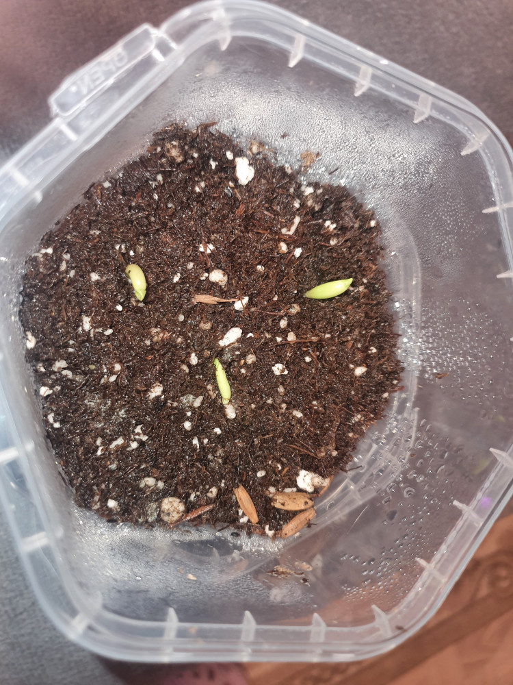 Взошли очень дружно, 3 из 3, теперь главное вырастить и увидеть цвет. взошли быстро очень на 5 день.
