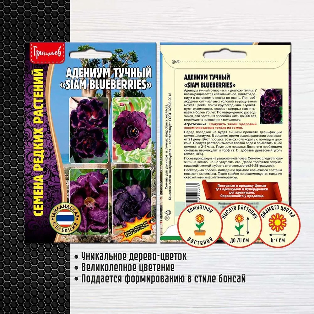 Григорьев Адениум тучный «Siam blueberries»В данный момент этот товар отсутствует в продаже. Возможно, у нас найдется аналогичный или похожий товар здесь. Серия: Семена редких растений Адениум тучный (адениум толстый) — вид невысоких деревьев или полукустарников семейства Куртовые. Листья темно-зеленого цвета с заостренной или туповатой верхушкой. Форма листовой пластины ланцетная, поверхность глянцевая. Его однотонные цветки малинового или бордового оттенка, в сочетании с плотным стволом, выглядят очень экзотично и красиво. Это цветочное чудо в вашем доме. Цветет Адениум в основном с весны по осень. При соблюдении оптимальных условий выращивания может цвести почти круглогодично. Существуют экземпляры, возраст которых насчитывается более 75 лет. По утверждению разводчиков, эти растения способны жить до 200 лет, переходя из поколения к поколению. |