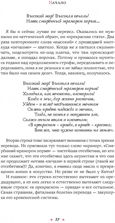 💳 Оплатить за товар можно при получении 🇰🇿 Есть бесплатная доставка по Казахстану 🎁 Копите бонусы с каждой покупки Серия: Слово переводчику Всякий хороший переводчик — исследователь, влюбленный в чужое слово. Любимые поэты есть у каждого из нас, но совершить путешествие по пяти векам зарубежной поэзии, преодолеть грозные рифы непереводимостей и не застрять в тяжелых льдах и торосах словарей — такое удается не каждому. Григорию Кружкову это удалось. Неуемная тяга к открытиям уводила его далеко, к островам, на которых правили и приносили жертвы Аполлону его любимые поэты: Джон Китс и Льюис Кэрролл, Роберт Фрост и Уильям Йейтс, Джон Донн и Эмили Дикинсон. Все увиденное и испытанное в этом литературном путешествии требовало запечатления. В результате получился захватывающий рассказ о переводческой жизни, ее комедиях и драмах, о тайнах ремесла, любимых поэтах и переводчиках. |