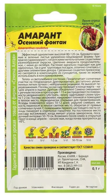 Семена Алтая Амарант «Осенний фонтан»-30% +8