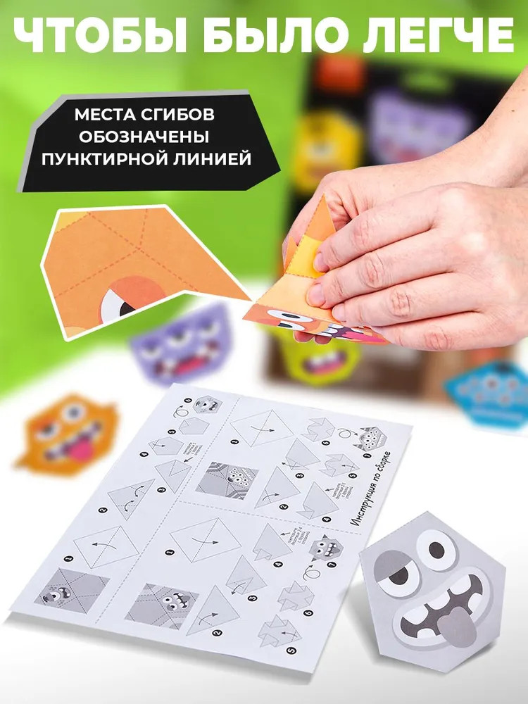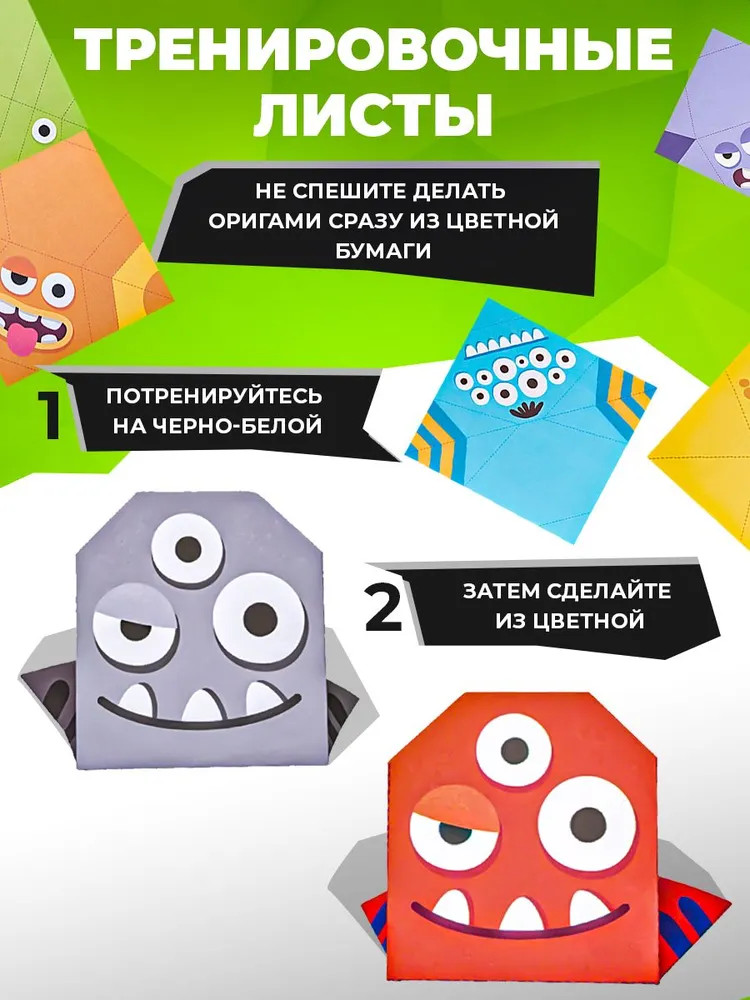 💳 Оплатить за товар можно при получении 🇰🇿 Есть бесплатная доставка по Казахстану от 1 дня 🎁 Копите бонусы с каждой покупки Оригами — это японское искусство складывания фигурок из бумаги. Набор Оригами «Монстрики» станет отличным досугом для ваших детей! С его помощью можно сделать 6 веселых рожиц — монстриков из цветной бумаги. |