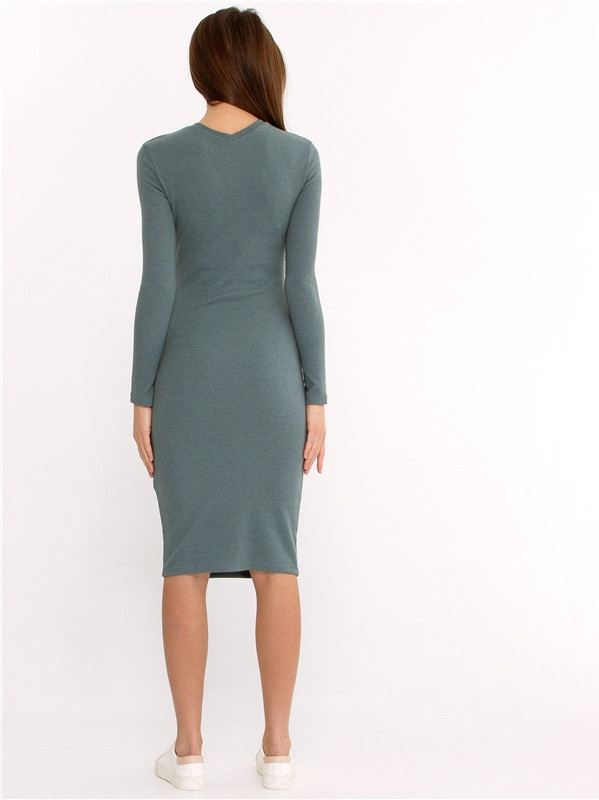 Стильное платье из мягкого хлопкового полотна с лайкрой. Изделие с длинными рукавами и v-образным вырезом горловины спереди и сзади. Отличный вариант на каждый день!