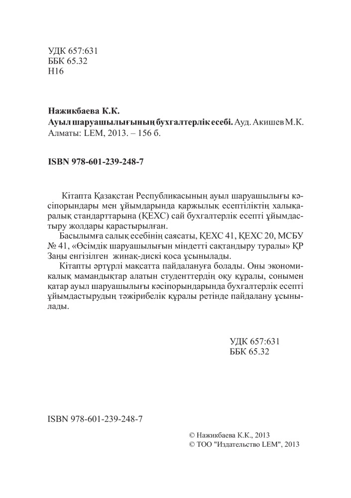 💳 Оплатить за товар можно при получении 🇰🇿 Есть бесплатная доставка по Казахстану от 1 дня 🎁 Копите бонусы с каждой покупки Кітапта Қазақстан Республикасының ауыл шаруашылығы кәсіпорындары мен ұйымдарында қаржылық есептіліктің халықаралық стандарттарына (ҚЕХС) сай бухгалтерлік есепті ұйымдастыру жолдары қарастырылған. |