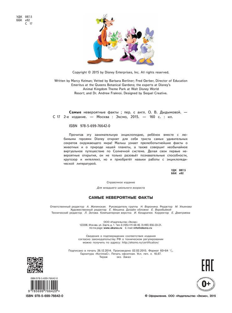 Самые невероятные фактыВ данный момент этот товар отсутствует в продаже. Возможно, у нас найдется аналогичный или похожий товар здесь. Серия: Disney. Моя первая энциклопедия Прочитав эту занимательную энциклопедию, ребёнок вместе с любимыми героями Disney откроет для себя триста самых удивительных секретов окружающего мира! Малыш узнает прелюбопытнейшие факты о животных и о природе нашей планеты и даже совершит необычайное виртуальное путешествие по Солнечной системе. Делая свои первые невероятные открытия, он не только разовьёт познавательные способности, кругозор и интеллект, но и получит первый опыт работы с энциклопедической литературой. |
