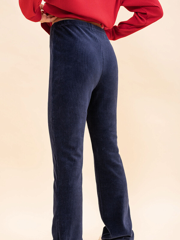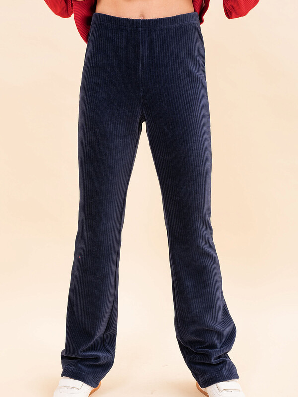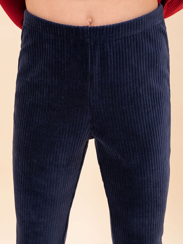 Детские брюки клеш из теплого вельвета для девочки представлены синем цвете. Штаны отличаются уютной посадкой и мягкой, трикотажной тканью в рубчик. Изделие не стесняет движений, позволяя легко двигаться. Штаны клеш для девочки сшиты из мягкой хлопковой ткани с густым ворсом и рубчиками на лицевой стороне. Детские вельветовые брюки по фактуре похожи на бархатные. В составе вельвета преобладают хлопковые волокна с добавлением полиэстера и эластана.