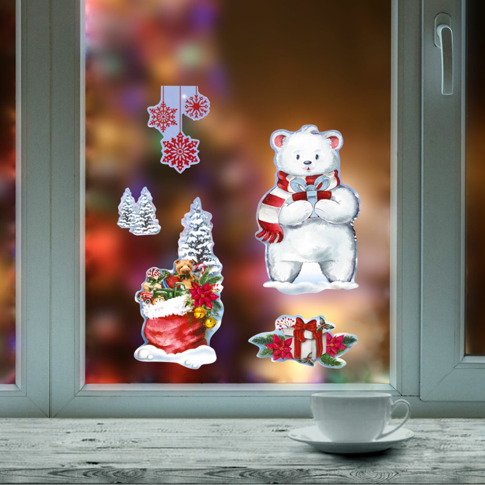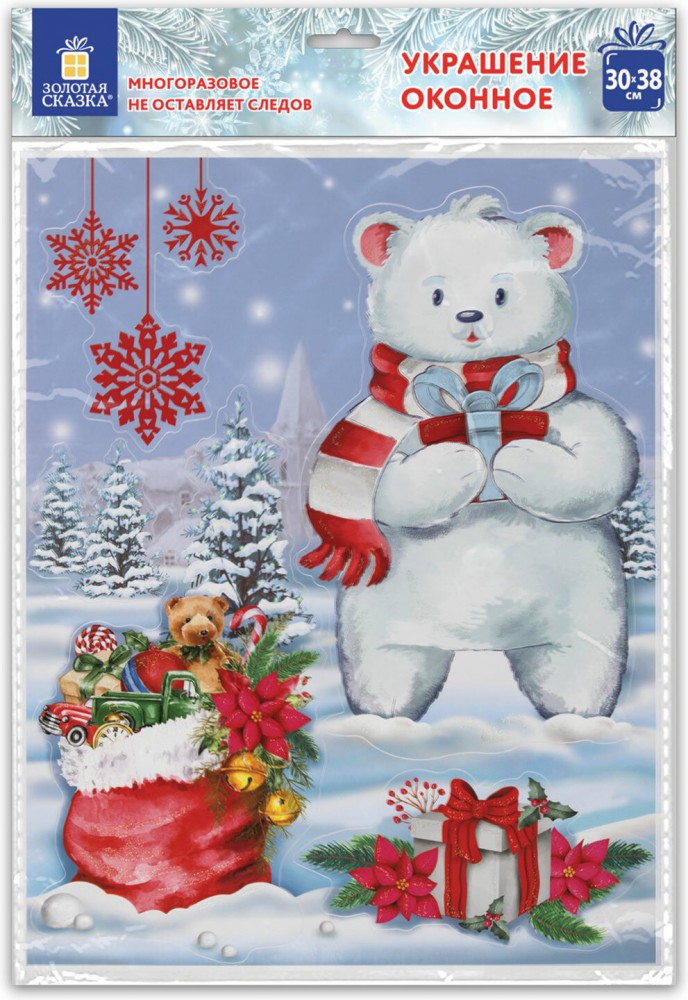 Золотая сказка Наклейка для окон многоразовая «Медвежонок»+30