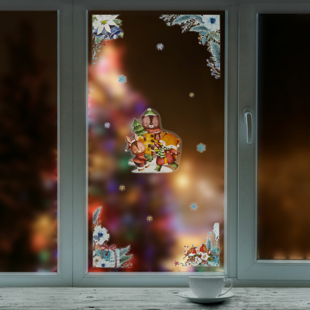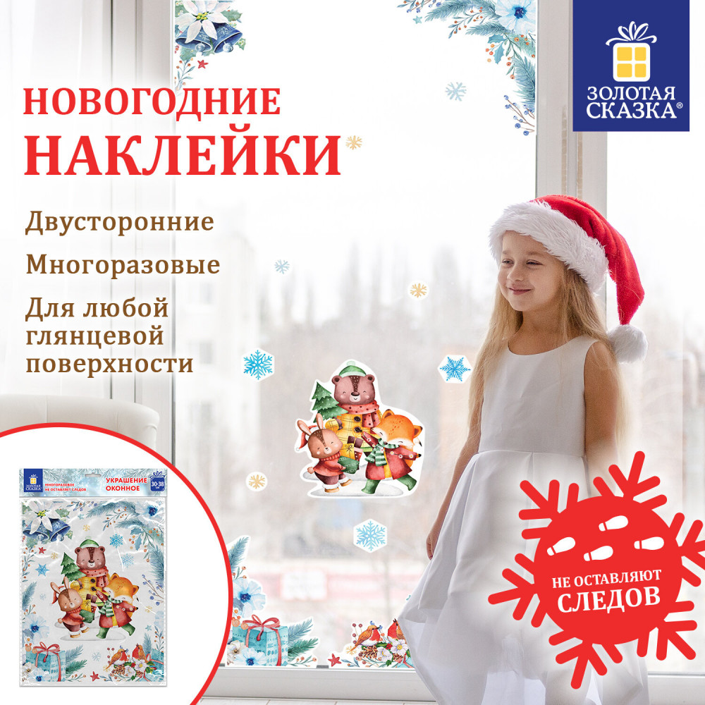 Золотая сказка Наклейка для окон многоразовая «Весёлые зверята»+29 красивый дизайн большой размер держится соответствует описанию