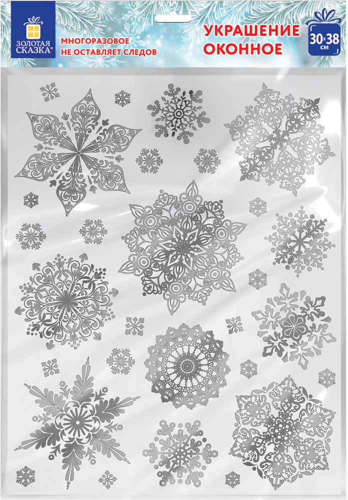 Золотая сказка Наклейка для окон многоразовая «Снежинки»+34 легкость использования красивый вид уют размер снежинок плохо держатся не видны