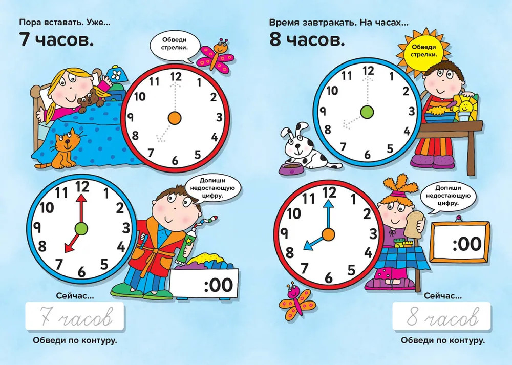 Который час? Определяем время. Многоразовые прописиВ данный момент этот товар отсутствует в продаже. Возможно, у нас найдется аналогичный или похожий товар здесь. Серия: Пиши-стирай Эта книга-тренажёр поможет вашему малышу быстрее освоить определение времени как по часам со стрелками, так и на цифровых табло. Кроме того, ребёнок в игровой форме познакомится и с таким важным понятием, как «распорядок дня». Поиграйте вместе с ребёнком, произносите вслух, который час, что делают дети на рисунках. Вместе обводите цифры и линии, пишите прямо в книге обычным фломастером. Любую ошибку легко исправить с помощью влажной губки.Важные навыки ребёнок получает во время игры. Книгу можно использовать много раз. |