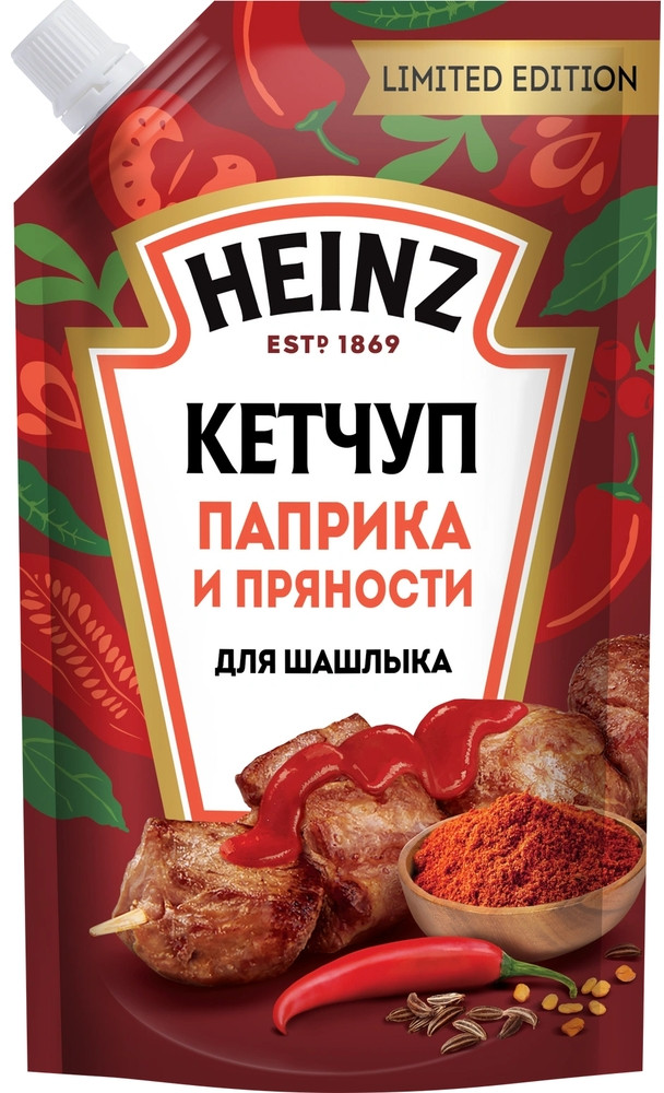 Heinz (Хайнц) Кетчуп для шашлыка «Паприка и пряности»В данный момент этот товар отсутствует в продаже. Возможно, у нас найдется аналогичный или похожий товар здесь. Томатный кетчуп «Паприка и пряности» для шашлыка — это лимитированная новинка от Heinz, великолепный шашлычный кетчуп из натуральной томатной пасты и целым букетом ароматных приправ. Помимо экстрактов кумина и пажитника, кетчуп содержит целых три вида перца — красную паприку, черный и кайенский. Тройной перечный аккорд порадует любителей шашлыков и других видов мяса на гриле. |