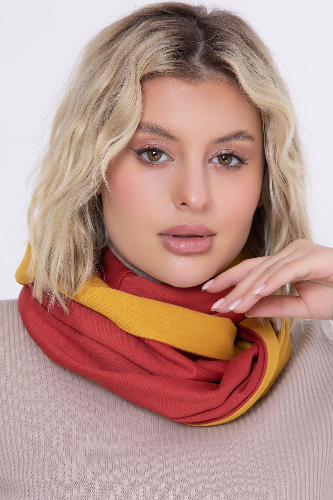 Материал двусторонний, цвет приятный, ткань мягкая, снуд понравился.
