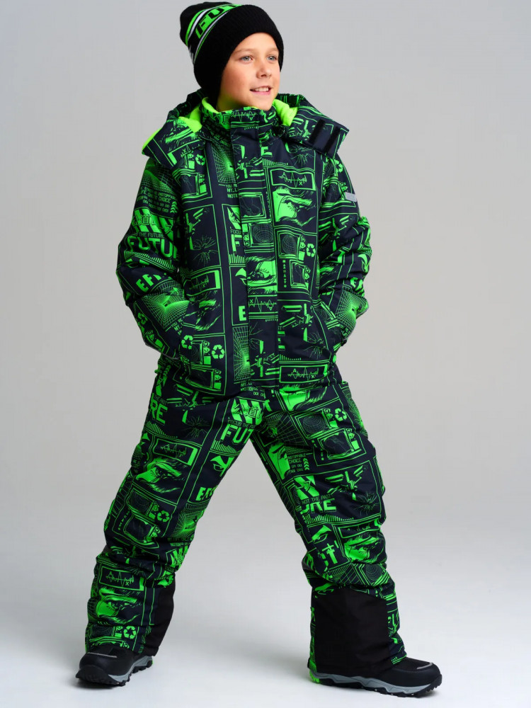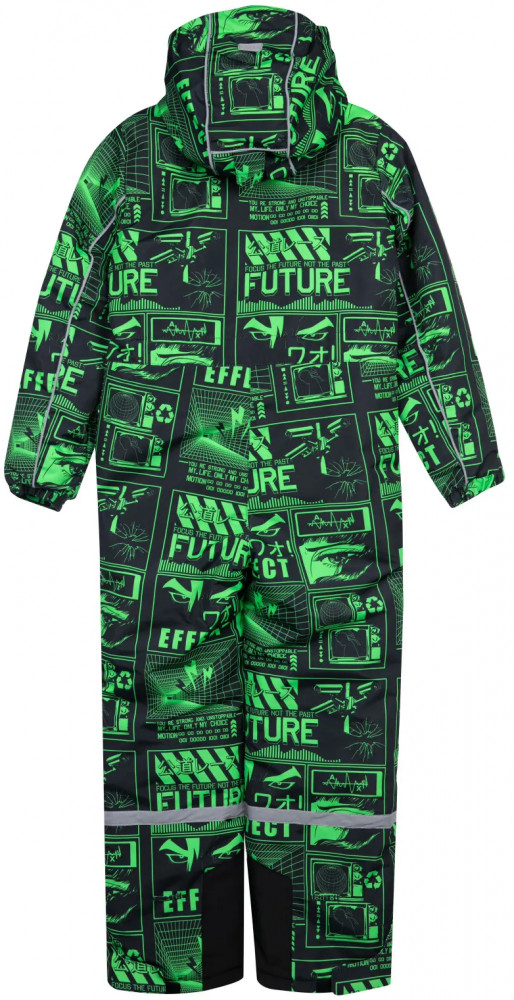 Зимний комбинезон из мембранной ткани 5000×5000. Линия Nord — высокая степень теплозащиты. Температурный режим до −25С. Подкладка — флис. Материал верха с ветрозащитным и водоотталкивающим покрытием. Внутренняя и внешняя ветрозащитные планки. Два боковых кармана на липучке. Внутренний карман. Потайной карман на молнии на левом рукаве. Съёмный капюшон на кнопках. Эластичные манжеты на рукавах, регулировка ширины липучкой. Внутренний снегозащитный манжет на брюках с резинкой snow stopper. Регулировка ширины и длины брючины липучками. Светоотражающие элементы. Температурный режим является рекомендованным, необходимо учитывать уровень активности ребенка и многослойность поддевочной одежды.