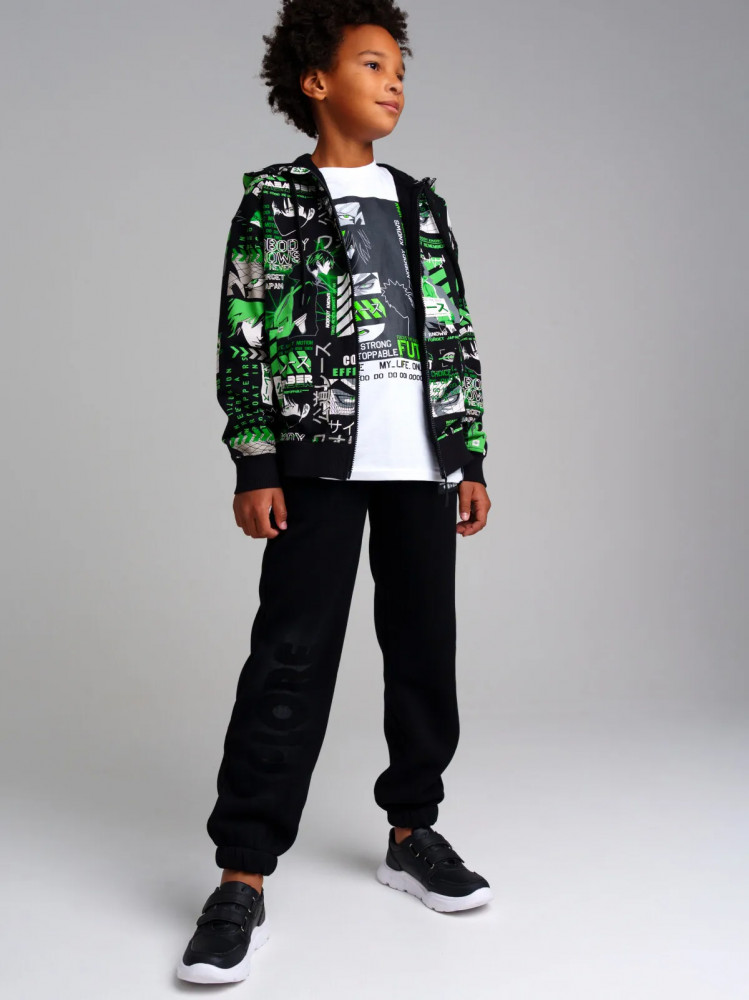 Хорошая, широкая толстовка, на крупного мальчика подойдёт. Покупала ранее брюки, все подошло. На манжетах прорези для большого пальца, капюшон с подкладкой из хлопка.