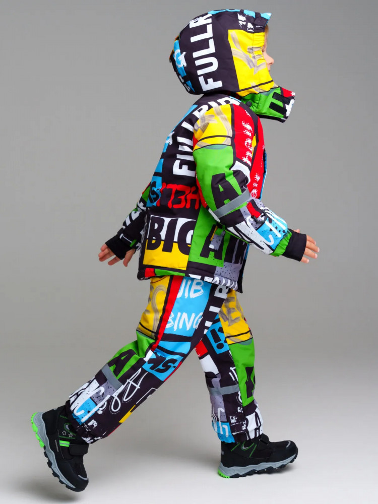 Зимний комплект из мембранной ткани 5000×5000. Линия Nord — высокая степень теплозащиты. Температурный режим до −25°С.Подкладка — флис. Материал верха с ветрозащитным и водоотталкивающим покрытием. Внутренняя ветрозащитные планки. Два боковых кармана на липучке. Эластичные манжеты на рукавах с отверстием для большого пальца. Съемный капюшон на кнопках с внутренней резинкой. Полукомбинезон на молнии. Эластичная тесьма по низу брючин. Силиконовые штрипки. Светоотражающие элементы. Температурный режим является рекомендованным, необходимо учитывать уровень активности ребенка и многослойность поддевочной одежды.