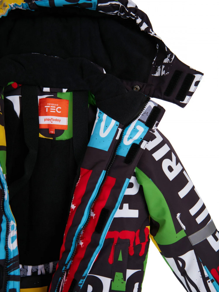 Зимний комплект из мембранной ткани 5000×5000. Линия Nord — высокая степень теплозащиты. Температурный режим до −25°С.Подкладка — флис. Материал верха с ветрозащитным и водоотталкивающим покрытием. Внутренняя ветрозащитные планки. Два боковых кармана на липучке. Эластичные манжеты на рукавах с отверстием для большого пальца. Съемный капюшон на кнопках с внутренней резинкой. Полукомбинезон на молнии. Эластичная тесьма по низу брючин. Силиконовые штрипки. Светоотражающие элементы. Температурный режим является рекомендованным, необходимо учитывать уровень активности ребенка и многослойность поддевочной одежды.