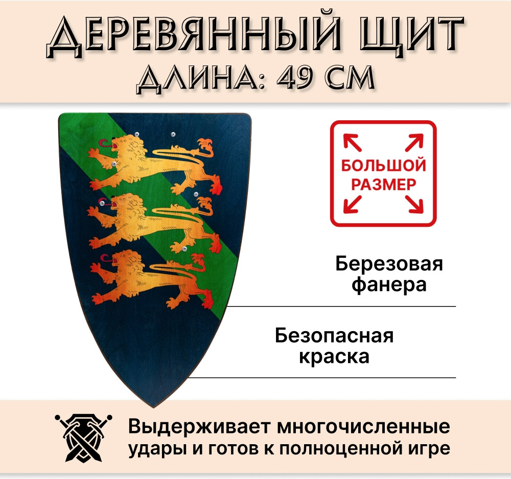 Древо игр Щит «Британец»В данный момент этот товар отсутствует в продаже. Возможно, у нас найдется аналогичный или похожий товар здесь. Большой деревянный щит отлично подходит для ролевых игр, в которых ребенок сможет почувствовать себя рыцарем, викингом, воином. Деревянный детский щит для мальчика имеет повышенную прочность к ударам и будет надежной защитой в детских боях на деревянном оружии. Рыцарский щит из дерева изготовлен из березовой фанеры с удобными рукоятками. Каждый щит обладает уникальным дизайном, чтобы привлечь внимание и воодушевить вашего ребенка, отшлифован и покрашен. Не имеет заусенцев и готов к игре с деревянными мечами от Древа Игр. |