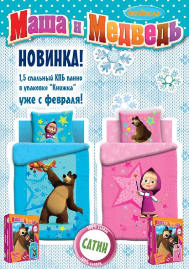 Комплект постельного белья Маша и медведь "Волшебница" изготовлен исключительно из сатина (100% хлопка) российского производства с применением прочных и экологически чистых красителей.